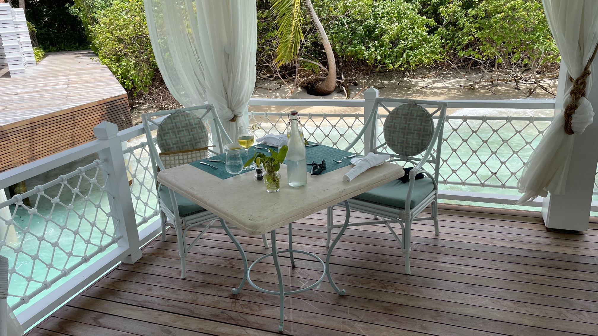 Imela sva super pozicijo na otoku. Zadnja dva dneva je ful pihalo in je bilo razburkano morje. Na najini strani otoka pa vse mirno. Še posebej pa je super, ker se po otoku vseskozi voziš s kolesom. Skratka, Ayado priporočava, lepo je, ustrežljivo osebje, dobra hrana, zelen otok,….